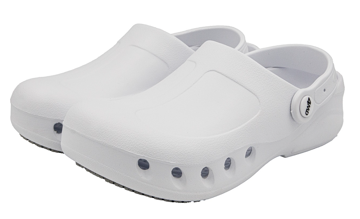 Medical footwear DOVE is an indispensable solution for individuals working in demanding environments such as hospitals, laboratories, or industrial facilities. The innovative design of the shoes is based on combining EVA foam with RB rubber, ensuring exceptional lightness, flexibility, and durability. The EVA foam provides softness and excellent cushioning, protecting the feet from excessive strain and fatigue, while the RB rubber increases resistance to mechanical wear, allowing for prolonged use. An additional advantage of DOVE medical footwear is the padded stabilizing strap that ensures a precise fit to the shape of the foot, eliminating the possibility of the shoe slipping. The shoes have been designed with ergonomics and user safety in mind. Their non-slip sole guarantees stability even on demanding surfaces.